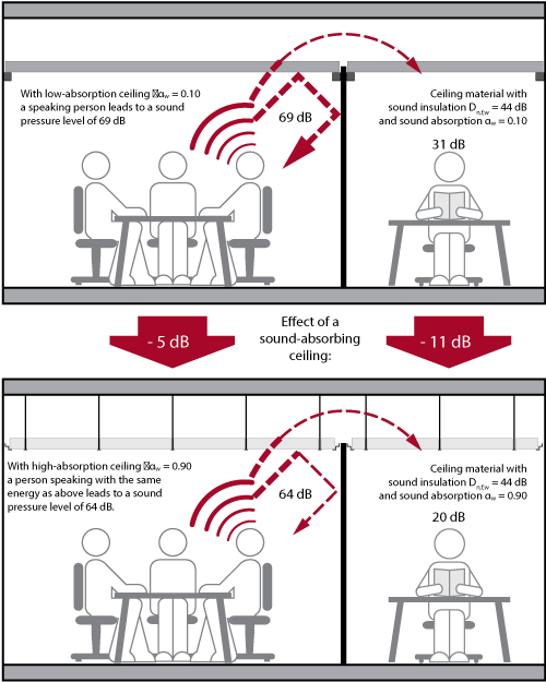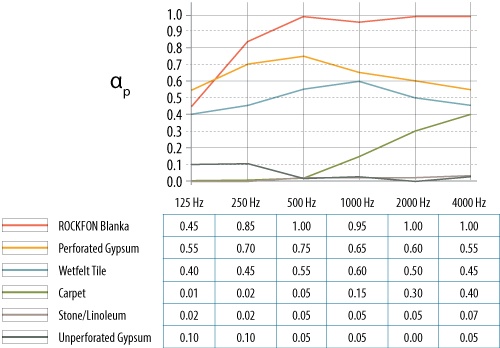 Mange Rockfon-himlinger gir lydabsorbsjon i klasse A.