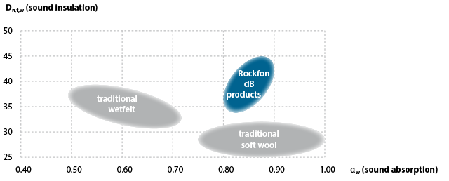 Steinullen som brukes i Rockfon-produkter gir den høyeste ytelsen sammenlignet med mange andre materialer.