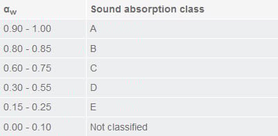Den internasjonale standarden ISO 11654 deler absorpsjonsegenskapene inn i fem klasser, fra A til E. αp-verdiene blir sammenlignet med en serie av faste referansekurver. Spennet mellom referansekurvene er bredt, så absorpsjonsklassene gir bare et grovt bilde av evnen til å absorbere lyd.